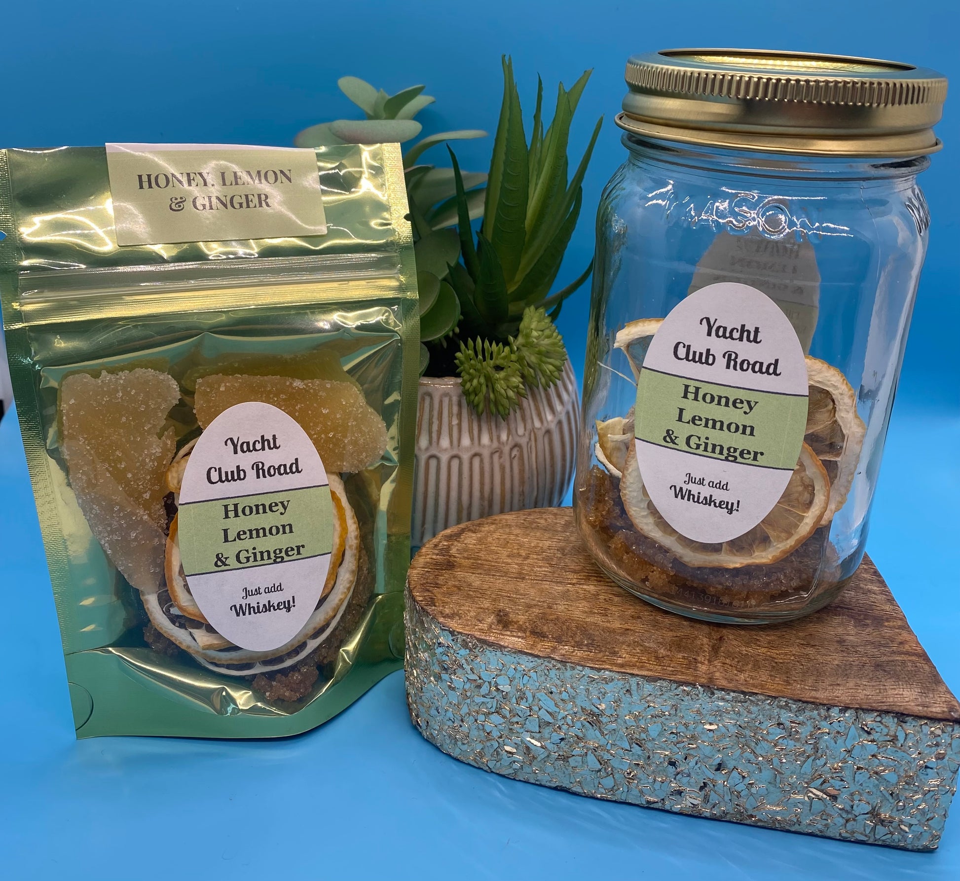 A delicious combination of Candied Ginger, Dried Citrus and Honey Infused Organic Sugar that matches well with Whiskey or even, Vodka, Gin or Rum. With Whiskey, add a little heat to make a Hot Toddy to sip on a cold night.